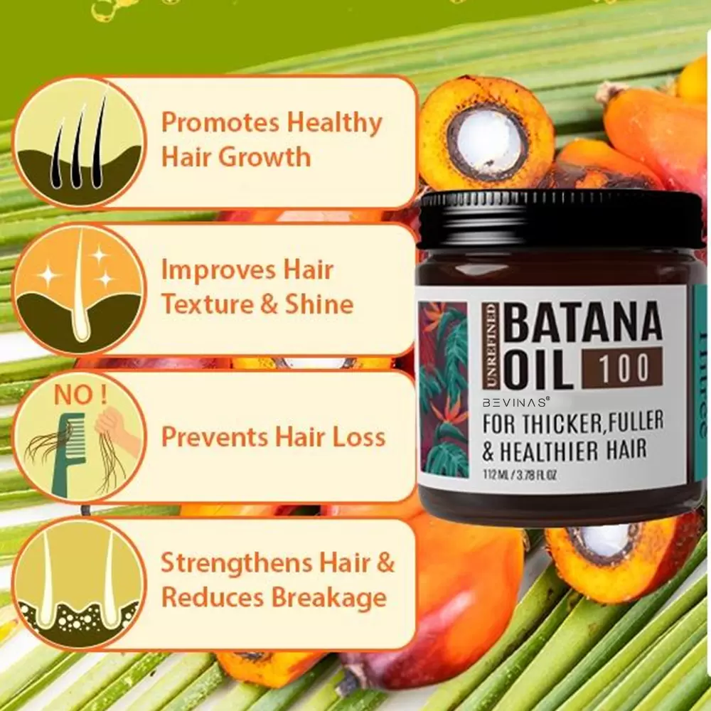 Our potent formula penetrates deep into the hair shaft to rebuild from within. It works to seal split ends, smooth severe frizz, and restore lost elasticity, leaving hair noticeably softer, stronger, and more manageable after just one use. Rich in natural antioxidants, essential fatty acids, and vitamins A & E, Batana oil nourishes the scalp, promotes a healthier environment for hair growth, and provides a protective barrier against environmental stressors and heat styling damage.