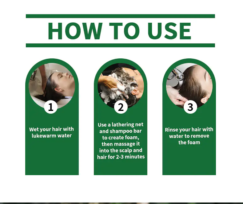 Suitable for all hair types, especially those with fine, weak, or slow-growing hair. Free from sulfates, silicones, parabens, and synthetic dyes. Simply wet your hair, lather the bar between your hands or directly onto the scalp, massage gently, and rinse. Store on a draining soap dish to keep it dry between uses.